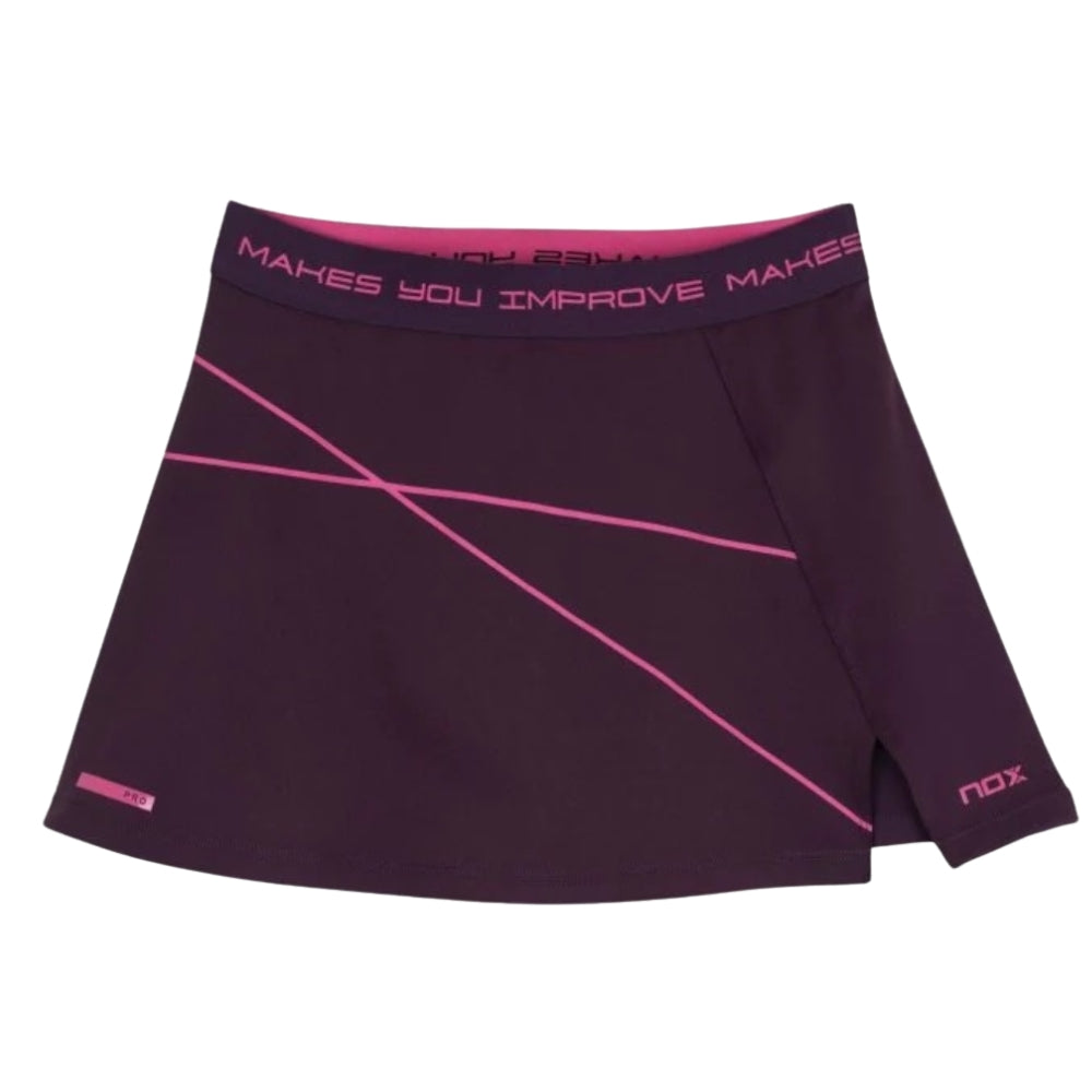 Diseñada para ofrecer comodidad y estilo en cada partido, la falda de pádel NOX para mujer destaca por su color morado con detalles en contraste que le dan un toque moderno y funcional.